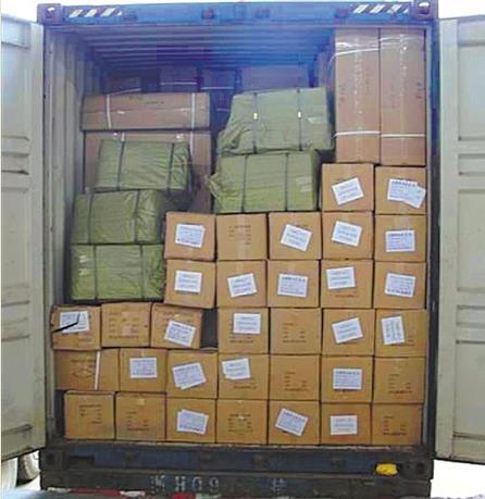 打开货柜,里面是成堆的性保健品。