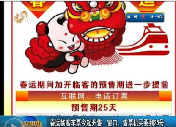 根据铁路部门今年新措施,2014年春运期间临时加开的旅客列车(以下简称“临客”)车票预售期提前,互联网、电话订票预售期为25天。也就是自12月23日起,互联网(含手机购票)、电话订票开始发售2014年1月16日临时加开的列车车票。