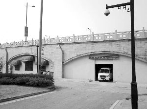 昨天下午,现代快报记者在觅渡桥下看到,桥的东堍共有十个桥洞,其中靠近杨枝塘路的一个桥洞作通道使用,其余桥洞均被封堵。