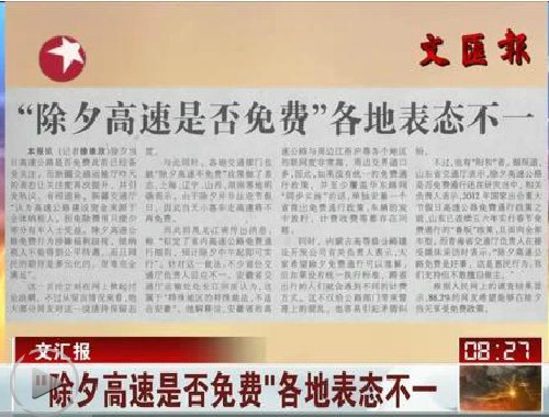 甘肃、辽宁、河北等地的交通运输部门表示,并没有接到国家除夕高速免费的通知,如果接到相关通知,将按新通知执行。
