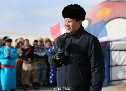 冬季那达慕活动上,习近平参加了“五畜祈福”仪式。他用无名指蘸上马奶酒向外弹了三下,然后说,我借“五畜祈福”寓意,祝新年风调雨顺,五谷丰登,草畜兴旺。让我们继续弘扬锲而不舍的精神,同心同德努力奋斗。祝祖国更加繁荣昌盛、各族人民更加幸福安康。