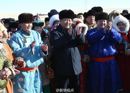 据新华社“新华视点”微博报道,“草原人民欢迎您”“欢迎您到锡林郭勒来做客”……临近中午,习近平来到当地蒙古族群众举行的冬季那达慕,看赛马,听长调,赏歌舞,牧民们争相同总书记握手。习近平对群众说,我向大家致以新春祝福,祝大家马年一马当先、万马奔腾、马到成功!
