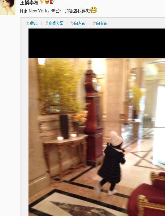 从李湘微博的留言中可以看出,他们一家刚好抵达酒店,王岳伦父女正在酒店前台办理入住手续,而其后王诗龄便十分兴奋地在酒店里跑了起来。