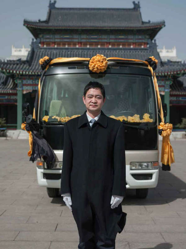 八宝山殡仪馆遗体接送队的21位员工,每天从城市的各个角落接来大约60具遗体。通常他们需要在早晨8点前完成工作,因而常常在5点就自然醒来。他们首要的任务是让情绪激动的家属冷静下来。古学军的经验是穿过吵闹的人群,寻找一位冷静旁观的长者,这位通常是能够喝停混乱场面,当家做主的。行驶在路面时,如果哭泣的家属坚持抛撒纸钱,他就要停下灵车,心平气和地一张张捡起。