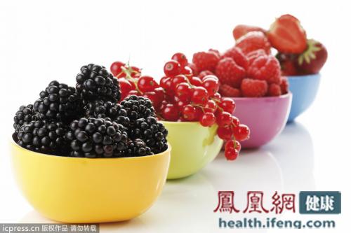 富含青色素(即花青素)的食物:黑莓、覆盆子和樱桃。