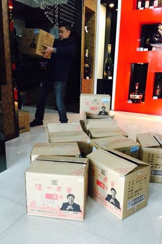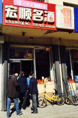 记者跟随第一组稽查人员于上午9:50分进入批发市场,在宏顺名酒店发现经销商已经藏于库房里的泸州老窖二曲酒,并现场查扣。另一组稽查人员已经携带吉林省食药监局授权文件,奔赴辽源市查扣一商家位于东风县的库房。10:30分稽查人员到达银河大街166号春胜名烟名酒行,发现问题泸州老窖二曲酒并进行查扣。