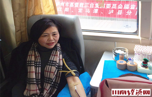 泸州市基督教会主任牧师廖晓琴带头献血