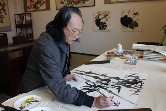 画家周光汉正在作画
