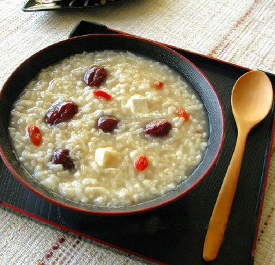 准备粳米60克、大枣10枚,一起煮成粥状即可,佐早餐食。