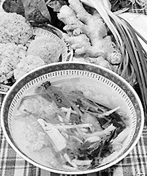 原料:鲜鲫鱼200克,黄芪20克,生姜、细葱、味精、精盐各适量。