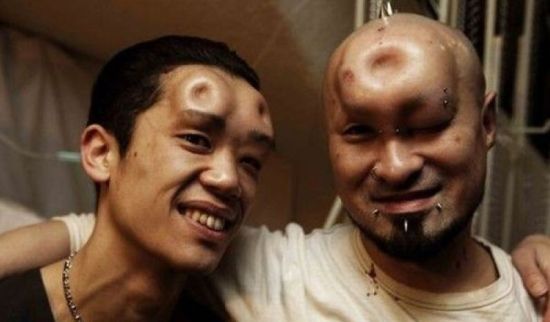 贝果头流行日本 额头注盐水似面包圈被斥变态 日本青少年人群中有一种人体变形美容潮,其中有一种叫“贝果头”。接受这种'贝果头'的人会在额头上注射一些盐溶液,然后鼓起的溶液胞中间用拇指按压,最终形成的样子看上去就好像在额头上长出一个“面包圈”。