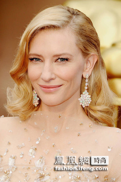 新晋奥斯卡影后凯特•布兰切特画着与奶油色Armani Privé礼服同色系的妆容,从头到脚都溶合在裸色色调,突出明艳的眼神,非常雍容高贵。