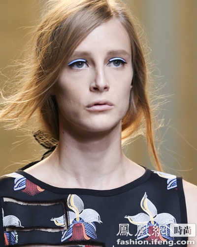 粘贴型眼线可以省去你画眼线的烦恼。像芬迪一样,把淡蓝色眼线黏在睫毛线上,还可省去卸妆的力气。