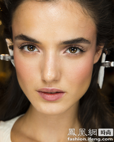 范思哲把粉红色用在嘴唇上和眼皮上,强调脸部结构和眼神,女人味十足。