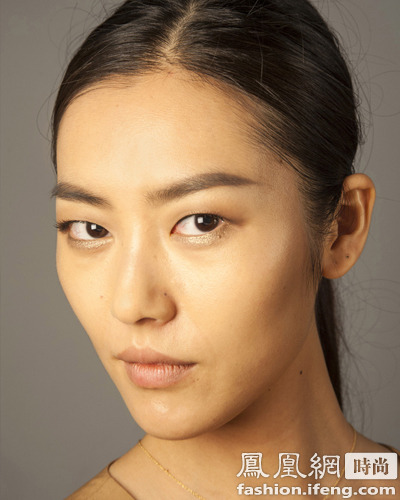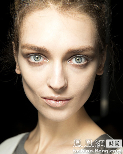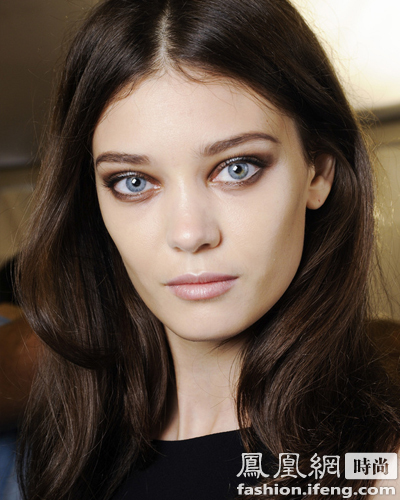珠光褐色眼影加深眼睛的凹陷程度,是欧美系妆容的要点。