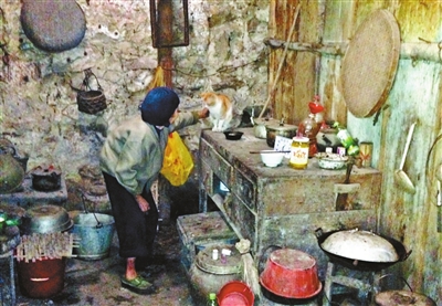 在老人心中,它们都是自己的“同伴”,和自己同居一室:老屋左边是老人的灶台、木箱及一干杂物;右边则是两个鸡舍。