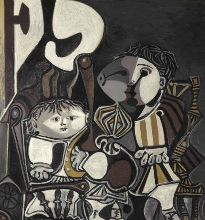 这件油画作品《两个小孩》创作于1950年,画的是他自己的两个小孩,属毕加索风格成熟期典型的代表作,画面中的人物形象是其3岁的儿子克劳德和1岁的女儿帕洛玛。据资料介绍,从当年这件作品完成一直到毕加索去世,都一直悬挂在毕加索书房的显要位置,是毕加索本人非常心爱的作品。
