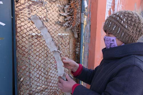 在记者拍摄小区内无人清理的垃圾时,居民王大娘指着一栋居民楼外墙说:“楼房底部的防寒保暖的板子掉下来了,现在一点作用都没有。”果然,记者发现该楼底部外墙粘贴的防寒苯板已经脱落,仔细观察发现,苯板与墙体之间只是抹了薄薄的一层胶,并没有锚固件。在随后的走访中,看到该小区多数楼房的外墙保温苯板发生脱落现象。在C2区06栋居民楼,记者有了吃惊的发现,该楼1楼窗户阳台保温的苯板,竟然是用竹签串起来固定的。