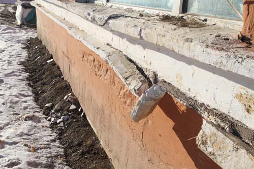 19日13时20分,家住天池圣景小区C2区的刘先生正在卧室里看书,突然听到厨房“嘭”的一声响。他连忙赶过去查看,发现是壁橱柜内侧墙体镶嵌的一块瓷砖掉了下来。望着摔碎的瓷砖,刘先生心里不是滋味,自家的新房刚入住还不到半年,塑钢窗下沉压成了弓形,厨房的大理石地面更是布满了一道道裂纹。另外,单元入户的防盗门和对讲器更是破损严重,早已失去了防盗和对讲功能。一楼内侧墙体返潮,挂着厚厚的白霜,涂料脱落后露出块块湿漉漉的红砖。